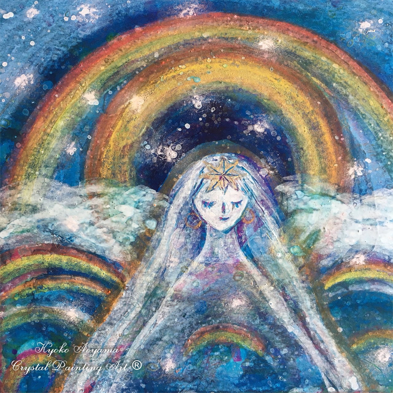 原画「Rainbow mountain」2021年制作 シリウス紙 Acryl&Crystal painting